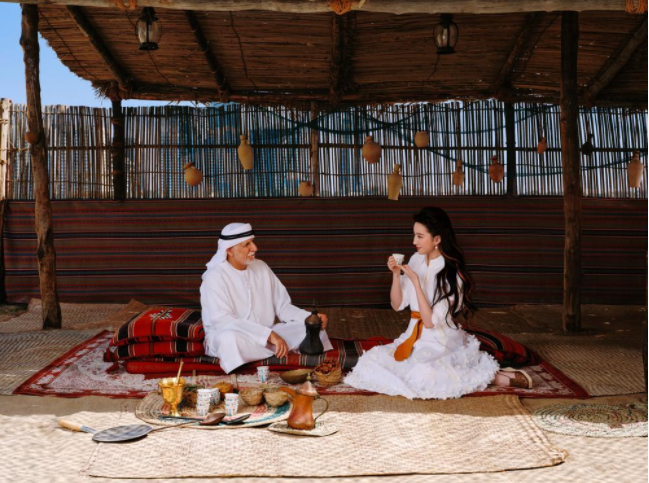 在摩天大樓勾勒的城市天際線之下,民俗村(Heritage Village)為人們打開了一扇窺見阿聯酋傳統生活的窗口。在這里,你可以觀賞工匠現場制作陶器、吹制玻璃、在織布機上穿梭引線,或是學習傳統編織工藝、嘗一口阿拉伯咖啡,仿佛回到從前的時光,簡單又治愈。走之前,別忘了逛逛這里的香料鋪子,試試劉亦菲口中“舒服、溫暖,帶有泥土氣息”的烏木香,這是屬于阿布扎比的獨特韻味。