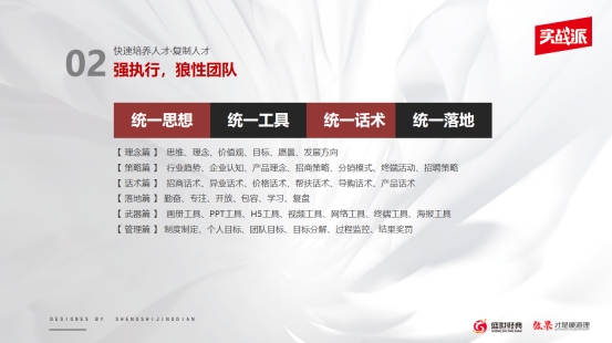 ·團(tuán)隊(duì)力:通過系統(tǒng)培訓(xùn),統(tǒng)一思想、工具、話術(shù)和落地,打造鐵血團(tuán)隊(duì)。