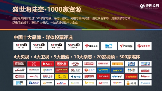 2、資源輸出:整合超過600家電視、雜志、網(wǎng)絡(luò)等媒體資源,以極低成本為客戶實(shí)現(xiàn)高性價(jià)比品牌曝光。