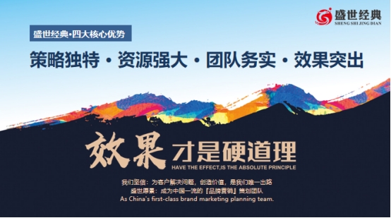 盛世經(jīng)典營銷策劃有限公司,作為中國十大策劃機(jī)構(gòu),專注服務(wù)發(fā)展型企業(yè),以“效果,才是硬道理”為核心理念,為企業(yè)提供思想盛宴、方法盛宴、資源盛宴三大價(jià)值體系。