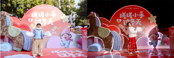依托“來福州 過福年”的濃厚文化氛圍,抖音在上下杭歷史文化街區的非遺集市設置了“搓搓小手過冬天”專屬親子打卡墻。現場融合IP小手套元素與新年特色,為親子家庭提供拍照留念專屬空間。