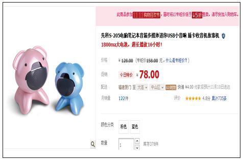 先科S-205電腦筆記本音箱多媒體迷你USB小音響,充滿童趣小狗圖案,簡節而又大方。它是一款,連接電腦就能作為電腦音箱,插上手機內存卡不接電源就能連續播放16小時音樂的全能音箱 。而雙十一的售價是78元,喜歡的朋友們可先加入購物車,等到雙11那一刻來臨。