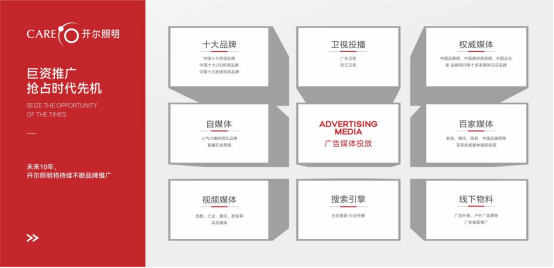 廣覆蓋:品牌主動營銷,推廣持續(xù)發(fā)力。2023年,開爾持續(xù)攜手央視、衛(wèi)視、門戶網(wǎng)站等大眾媒體,推出一系列品牌建設(shè)“組合拳”,用最符合品牌調(diào)性的營銷方式打開突破口,提高品牌活躍度,為終端門店賦能造勢,為關(guān)注開爾照明的朋友們提供一手信息,增強(qiáng)開爾與核心客商的溝通互動。另一方面,開爾將聯(lián)動抖音開啟線上營銷新模式,通過精準(zhǔn)話題營銷模式,強(qiáng)化品牌和粉絲以及潛在消費(fèi)者的互動鏈接,為品牌提供更豐富的營銷玩法支持,助力品牌挖掘更大的增量市場。