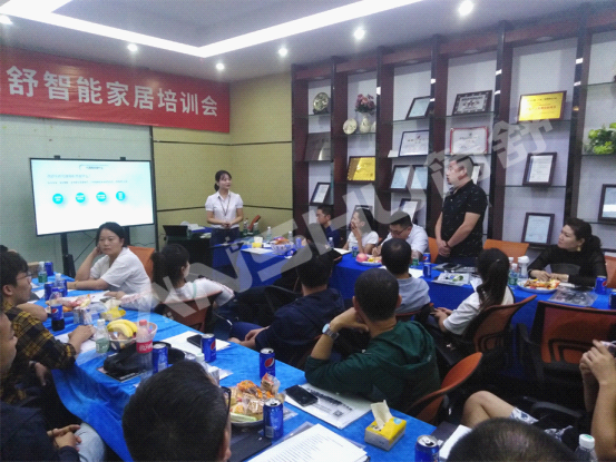 為了幫助簡舒智能家居城市合伙人打開當地智能家居市場,提升代理商團隊管理水平及業務能力,讓簡舒智能家居城市合伙人能夠快速開拓當地市場、占領市場,簡舒智能家居成立運營協助團隊,針對行業發展、產品技術、市場推廣、銷售策劃、方案設計、產品安裝調試等環節舉辦了一場又一場的智能家居培訓會,此次培訓活動,更是由行業經驗非常豐富的簡舒智能家居品牌創始人劉長明先生、總部市場總監袁小姐、技術總監徐先生等總部高層親自授課,授課內容以理論和實操相結合,讓代理商團隊能夠更好更快速地消吸收。