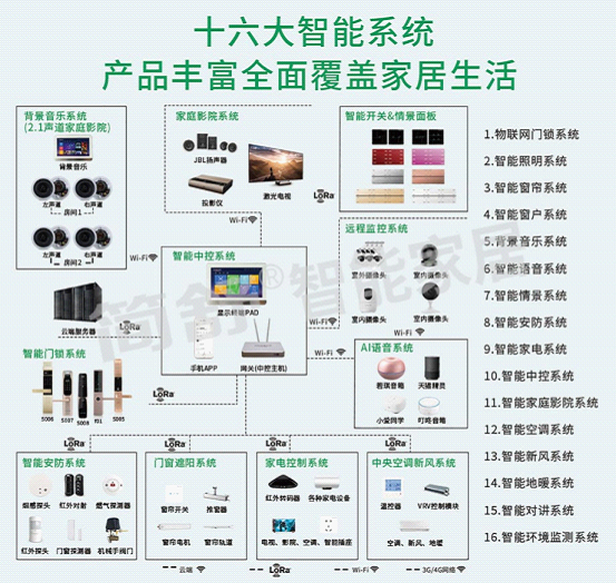智能家居十大知名品牌-JIANSHU簡舒智能家居品牌構建的LORA智慧家庭改變了人們對”家“的傳統認知,加速構建智慧家庭生態,推動智慧家庭的快速發展,自主研發生產的LORA全屋智能家居系統成功的解決了智能家居行業多年來有線與無線之爭,整合了有線與無線智能家居技術的各項優勢,別墅、復式樓等大戶型房子只需要一個LORA智能家居網關,即可控制全屋智能家居產品,真正實現了智能家居產品在智能化改造升級方案中落地可行,為家庭、別墅、樓盤、酒店、辦公室等不同類型的項目提供一站式的解決方案。