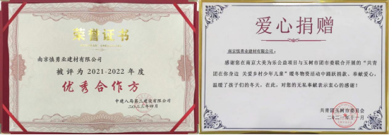 此外,慎勇業(yè)建材還積極參與愛心公益活動(dòng),為鄉(xiāng)村兒童送去溫暖。公司通過捐贈(zèng)等方式支持教育事業(yè)和其他公益事業(yè)的發(fā)展,為社會(huì)做出了積極的貢獻(xiàn)。為此,共青團(tuán)玉樹市團(tuán)委會(huì)向慎勇業(yè)頒發(fā)了“關(guān)愛鄉(xiāng)村兒童證書”,以表彰公司在公益事業(yè)方面的貢獻(xiàn)和努力。