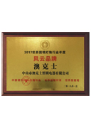 2020年 澳克士連續十五年榮獲“廣東省守合同重信用企業”稱號,澳克士獲得首批“古鎮燈飾源產地標識使用資格證書”稱號,被中國燈飾報評為十大家居照明品牌。