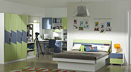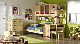 所謂“家居交互式循環發展系統”就是我們公司通過對消費者生活的生活習慣和家居環境進行研究而總結出來的一套理論,從而來指導我們產品開發的方向。通過我們的研究發現,一個成年人的性格、愛好和生活習慣等都會收到長期的居住環境影響。比如說顏色:過去我們的小孩居住環境由于受到經濟條件影響而一般都是在比較深沉的色調下成長,從而導致老一代的人在思想上比較保守和缺少色感,所以我們在家具色彩開發方面多采用帶有啟發性的色彩,從而引導小孩往良性方向成長;而家具設計的造型:一個好的造型,特別是開發給青少年的家具必須帶有一定的活躍性和時尚感,設計不能像成人家具一樣沉穩,這樣才能開發、啟迪和培養青少年的審美觀;而在功能性方面:多開發一些帶有隱藏功能的家具能挑起青少年的好奇心從而開發他們的創造力;當然更重要的是人性化的設計。我們針對不同的性格設計了多種不同色彩、功能、造型搭配的青少年套房,從而來適應不同的群體需要。