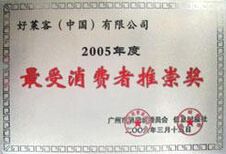 2004年,好萊客先后獲得“消費(fèi)者最喜愛(ài)品牌”、“最受消費(fèi)者推崇品牌”、“華南杰出家居建材品牌”、“華南最具影響力家居品牌”等榮譽(yù)。