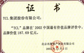 TCL集團股份有限公司,中國馳名商標,中國消費電子領先品牌,中國行業最具影響力品牌