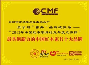 浙江東陽南馬雅典紅木家具有限公司是一家專業生產高檔紅木家具生產廠家。想要了解高檔紅木家具找雅典紅木。雅典紅木,占地面積30余畝,年產值過億,旗下擁有“明藝韻”、“雅典”兩大品牌,10000平方米的獨立展廳,引進先進的紅木生產設備,吸收了一批優秀的工藝師和精英人才,是紅木家具質量標準制定參與者之一、全國消費者滿意AAA單位、浙江省紅木家具協會副會長單位,也是通過ISO9001質量管理體系認證和ISO14001環境認證的政府重點扶持企業。