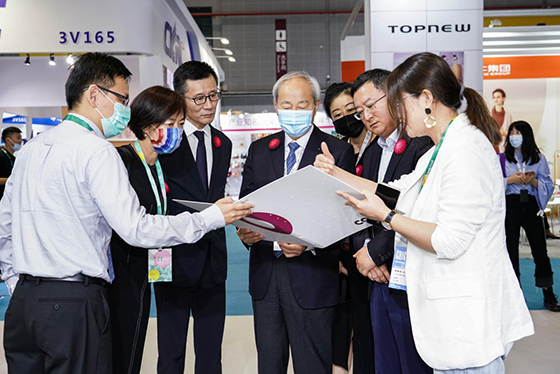中國(guó)紡織工業(yè)聯(lián)合會(huì)社會(huì)責(zé)任辦主任閻巖,中國(guó)紡織工業(yè)聯(lián)合會(huì)副會(huì)長(zhǎng)、中國(guó)服裝協(xié)會(huì)陳大鵬,中國(guó)紡織工業(yè)聯(lián)合會(huì)原會(huì)長(zhǎng)杜鈺洲及中國(guó)紡織信息中心副主任胡松到訪COLORO展位。