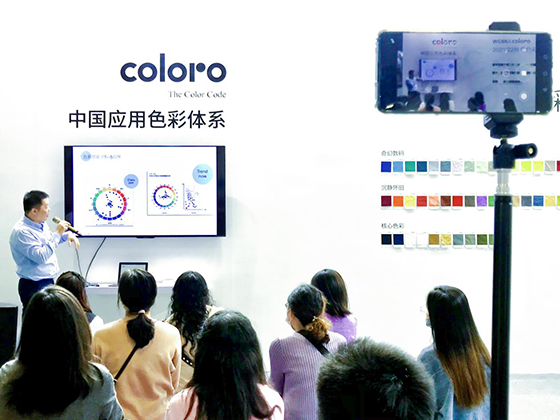 COLORO在Intertextile紡織面料輔料展和CHIC博覽會(huì)上針對(duì)色彩數(shù)據(jù)化管理均準(zhǔn)備了多場(chǎng)主題講座。COLORO總監(jiān)彭輝在《數(shù)字化色彩體系在紡織服裝產(chǎn)業(yè)鏈中的應(yīng)用》講座中分享了以色彩打造“品牌故事”,明確品牌定位與屬性,即使不同的產(chǎn)品,通過(guò)量化色彩可以被感性識(shí)別歸屬于同一品牌。另外,精準(zhǔn)供應(yīng)鏈色彩管理以及每個(gè)季節(jié)結(jié)合流行色用于服裝設(shè)計(jì)中的每個(gè)上貨波段的各種服裝類(lèi)別,容易塑造引領(lǐng)流行趨勢(shì)的領(lǐng)軍品牌形象。