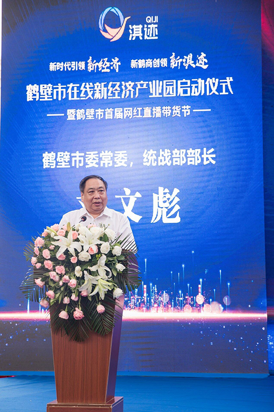 鶴壁市委統戰部部長劉文彪在致辭中表示,鶴壁市在線新經濟產業園要抓住機遇,集中資源優勢,線上線下相結合,打造鶴壁市新經濟生態。鶴壁市在線新經濟產業園董事長楊宏喜介紹了鶴壁市在線新經濟產業園概況——鶴壁市在線新經濟產業園致力于打造一個以直播電商產業鏈為中心,集創新創業、人才培訓于一體的新經濟產業園區。