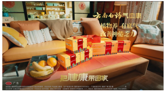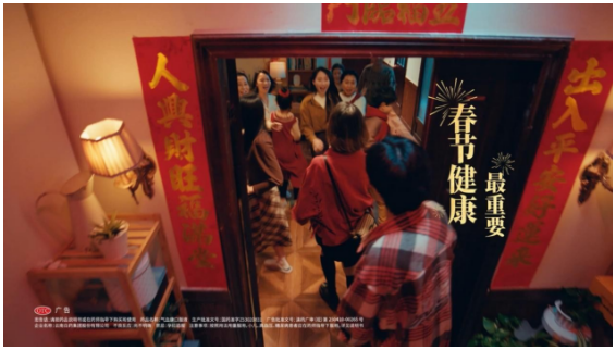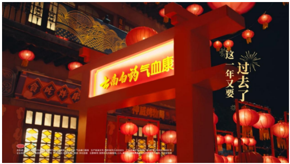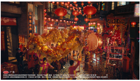 云南白藥春節TVC《一起把健康帶回家》場景溫馨真實、歌曲歡樂喜慶、產品的植入也頗有創意。從主角——加班的打工人接到一通新年祝福電話開始,云南白藥氣血康口服液一路引領女主角走過大街小巷回到家中,一路上的春聯、舞獅、煙花等春節元素接踵而至,展示了濃郁的過年氛圍。云南白藥以打工人的視角展開了妙趣橫生的回家過年過程,在濃郁喜慶的氣氛中穿插傳統春節文化中諸多元素,不管是視頻內容還是歌曲都趣味十足,回家過年的場景引起了消費者的共鳴。