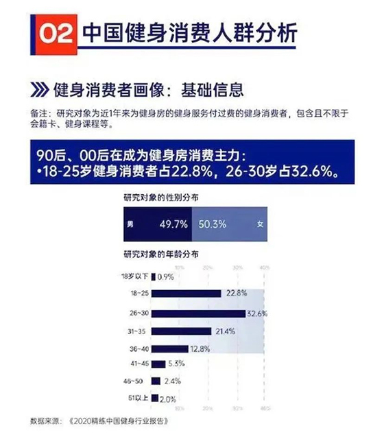 根據(jù)精練GymSquare發(fā)布的《2020中國健身行業(yè)報告》,18-30歲人群是最主要的健身消費者構(gòu)成。說句年輕人掀起全民健康潮,不夸張吧?