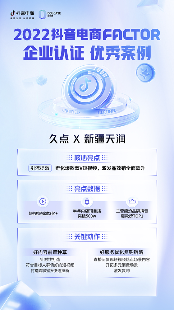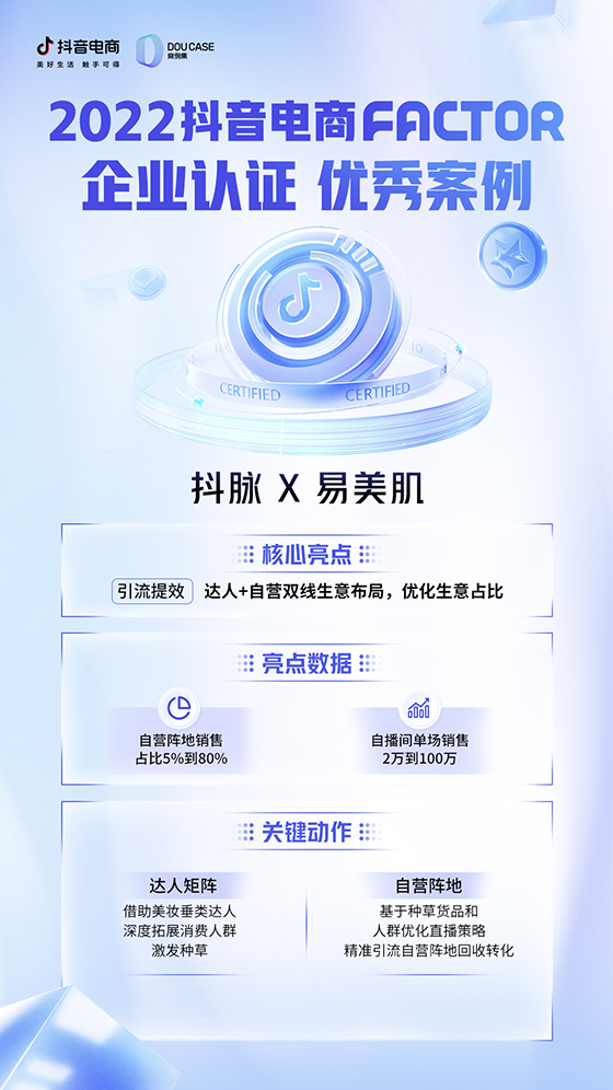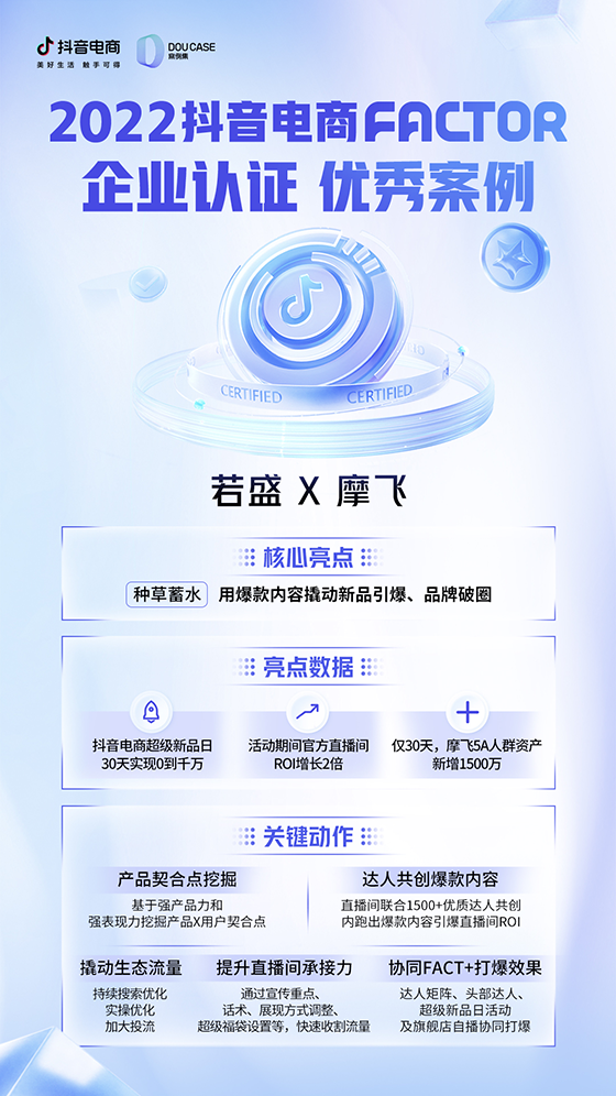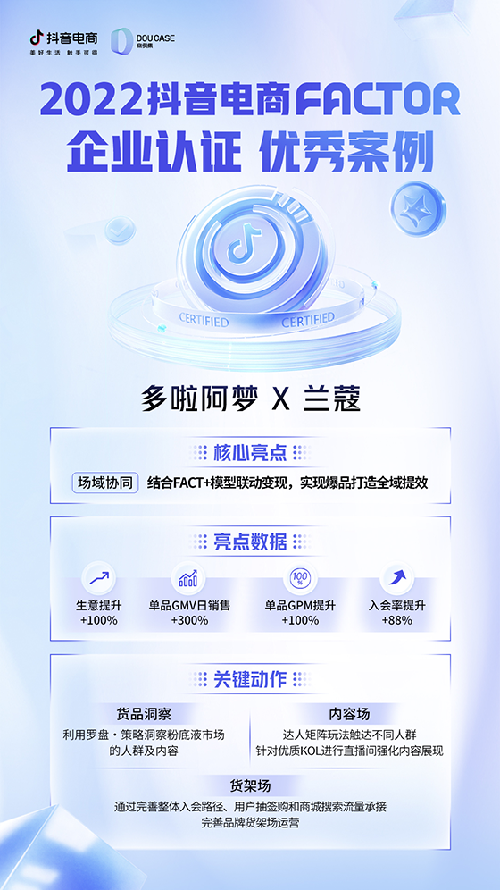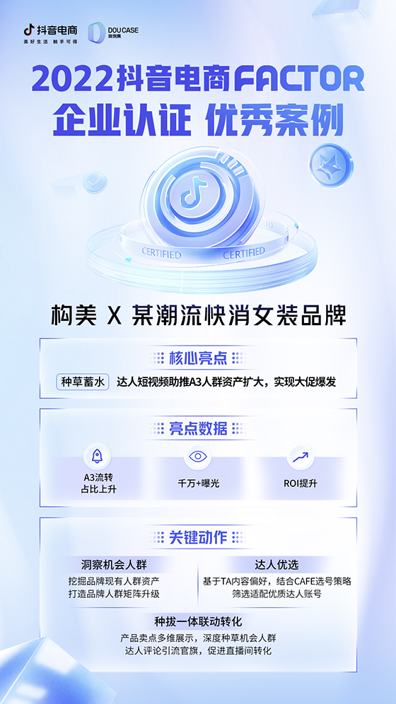 覆蓋用戶全場景、全鏈路購物需求,滿足用戶多元化的消費需求,并打通抖音電商所有場景,此次,不少入選FACTOR認證的服務商企業找到了自己的路徑,它們分享了各具想法的營銷“戰役”。