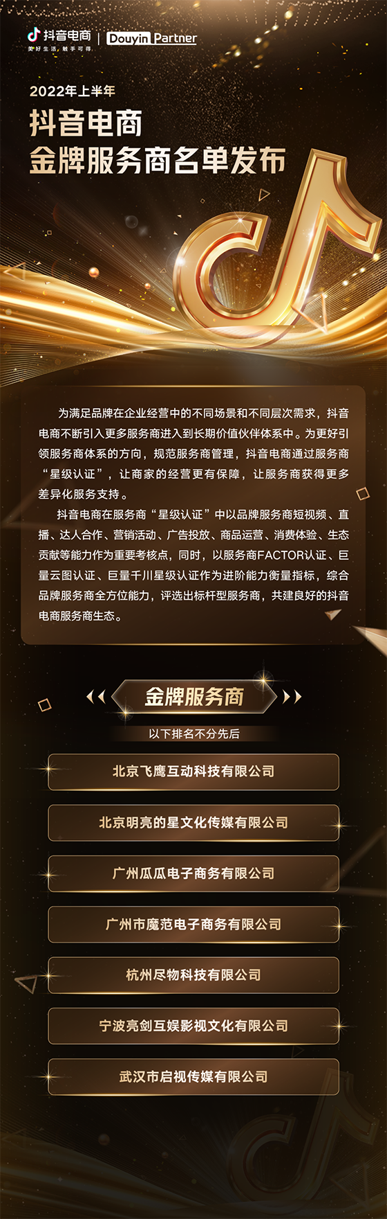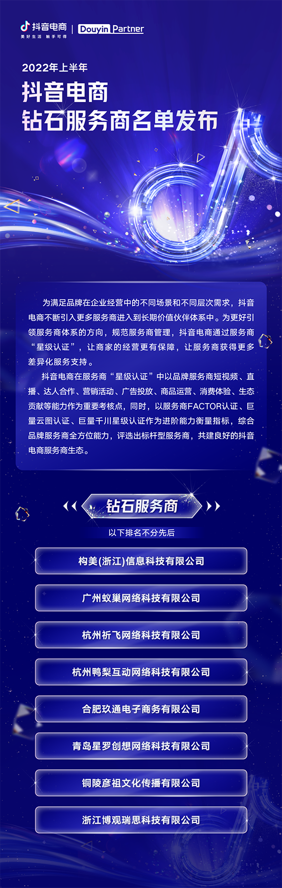 共建長效經營力,抖音電商公布2022年上半年星級認證服務商名單!