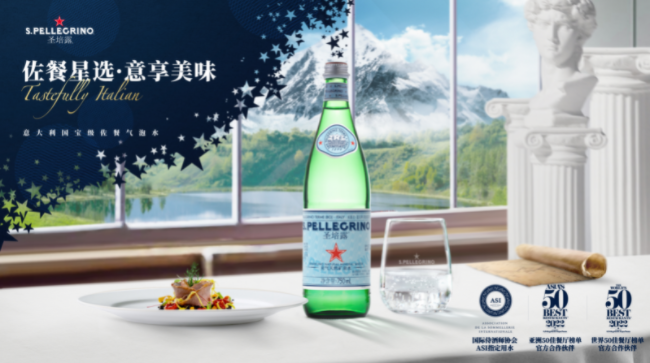 多年來,圣培露以享譽全球的出眾品質和經典獨特的口感,傳遞著“佐餐星選,意享美味”的品牌理念,一直閃耀于世界各地精致雅宴之上,是“世界侍酒師搖籃”國際侍酒師協會(Association de la Sommellerie Internationale)、世界/亞洲50佳餐廳榜單及全球星級酒店的指定用水和官方合作伙伴,也是全球知名食府和名廚菜單上指定的佐餐伴侶。