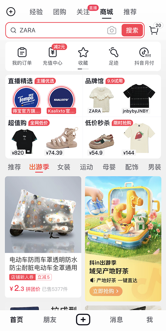 一方面,超20位頭部達人化身“出游好物推薦官”,立體化提高傳播聲量;同時,活動專屬話題#抖in域見好貨及活動主會場進一步聚合參與活動的商家和好物,以一站式營銷陣地,激活出游好物消費潛力。另一方面,抖音站內還配置明星開屏、商城活動中心等黃金資源位,為活動強勢引流,打造全平臺出游囤貨心智。