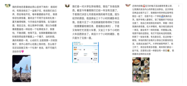 在創(chuàng)意和業(yè)務共振的同時,天貓還聯(lián)合青年情感大號@我要WhatYouNeed在小紅書和播客同步發(fā)起“異地戀心動瞬間”主題征集,邀請網(wǎng)友分享異地戀經(jīng)歷,參與話題互動。