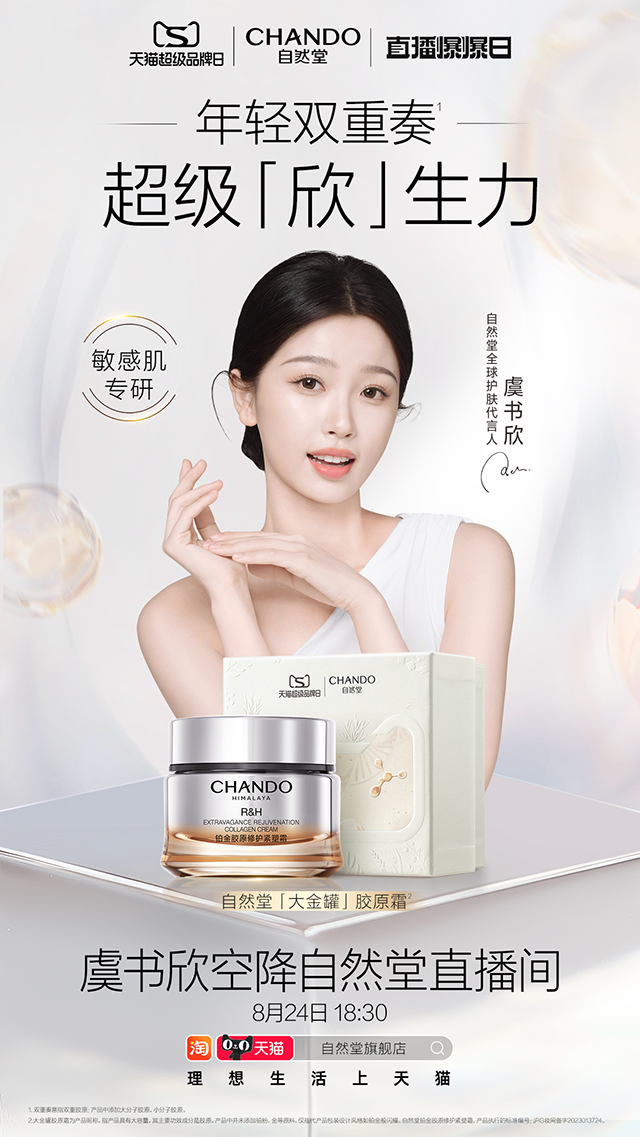 隨著自然堂種草喜馬拉雅公益行動第八季見證儀式的舉行,自然堂天貓超級品牌日也迎來了爆發狂歡。自然堂不僅多年致力于喜馬拉雅生態環境保護,為地球年輕貢獻綠色力量,更專注以尖端科技產品為消費者肌膚帶去年輕節奏。8月24日,自然堂天貓超級品牌日即將正式拉開帷幕,當晚18:30,自然堂聯合天貓超級品牌日及直播爆爆日,邀請自然堂全球護膚代言人虞書欣空降天貓直播間,帶來自然堂大金罐膠原霜等超多護膚星品好物,和消費者一同感受肌膚年輕“欣”生力。直播現場,虞書欣還將與萬千消費者一同感受第八季種草喜馬拉雅見證儀式的現場氛圍和高原草場的自然風光,還有雙城聯動的重磅驚喜等著大家一同揭曉見證。