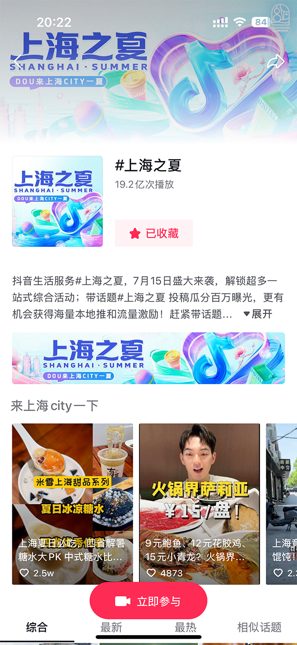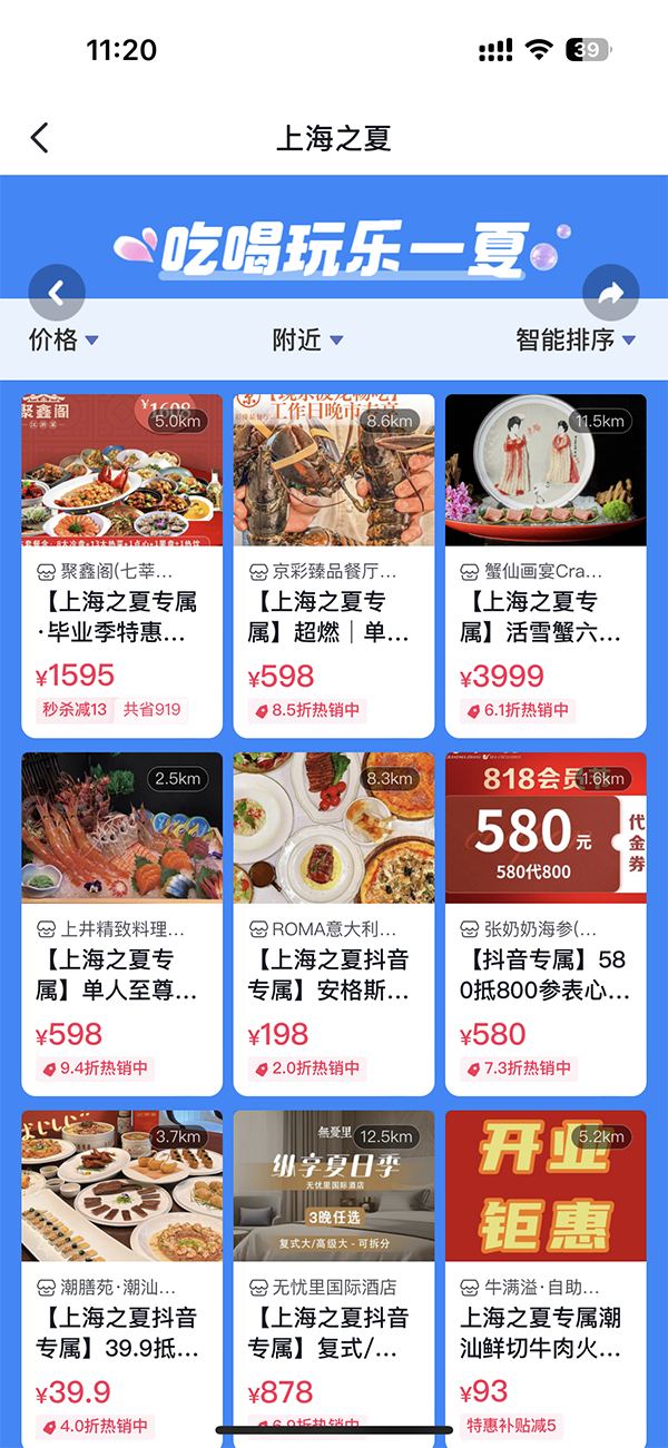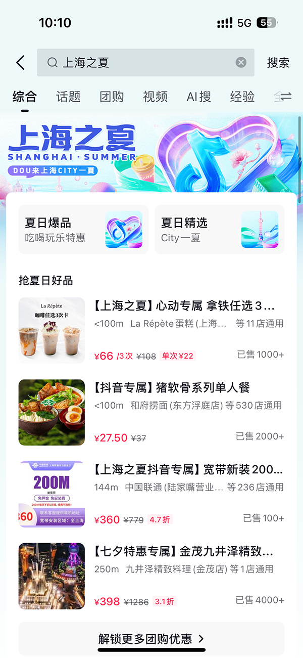 數據顯示,7月19日至9月22日期間,「上海之夏」IP活動參與商戶整體支付GMV7.8億+,抖音上線IP話題#上海之夏 曝光超22億次。諸多上海本地商家借勢IP和抖音生活服務提供的新營銷模式,實現聲量和生意雙增。