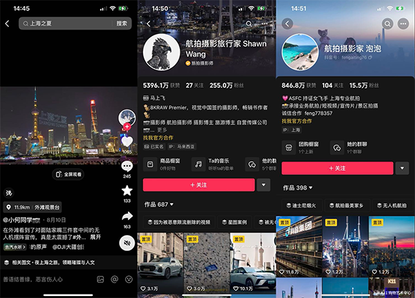 譬如策劃「上海之夏」無人機艦隊表演,合作@小何同學、@奕邱之貉、Gresky、歐小逸等攝影達人,產出高質量視頻,助推話題 #無人機俯瞰上海夜景 躋身上海同城榜熱榜。