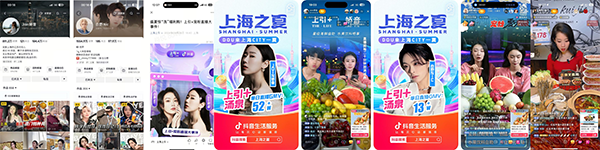 上海@上海小阿姨、@Join嬌音、@白野nic等本地高粉達人參與活動,以探店視頻引流+「上海之夏」IP專場直播,助推上海頭部商家生意爆發。久光百貨、新世界百貨、牛New、豫園、上引等專場成交GMV持續上漲。