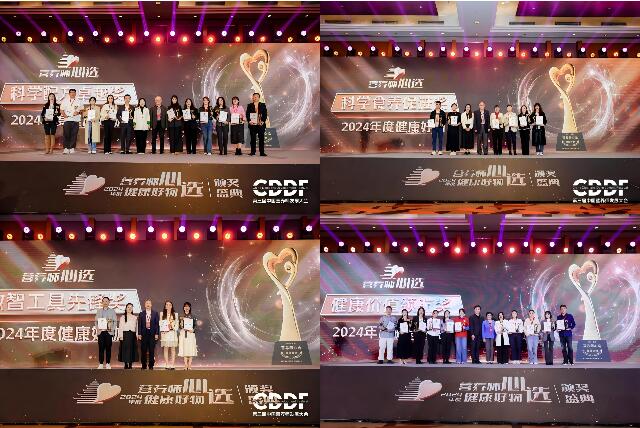 獲得科學食養促進獎的是湯臣倍健金裝蛋白粉,稻院士低GI慢升糖大米,西麥燕麥片系列、食養系列、麩皮系列,以及百草味每日堅果5黑款。獲得健康價值領航獎的是Move Free益節綠瓶氨糖軟骨素、美繁Mishige酵母β-葡聚糖制劑、金龍魚零反式脂肪食用油、優億滿河合滅活菌KAWAI、瑞幸咖啡、紐崔萊沛源蛋白調衡素、多力隨享谷物碗、母親雜糧飯、未名農夫高營養紫米、君樂寶簡醇0蔗糖酸奶以及愛他美領熠嬰幼兒配方奶粉。獲得科學配方卓越獎的是BioCare貝歐科女性蔓越莓益生菌、GNC每日營養包、均瑤健康體輕松50000億活性復合益生菌固體飲料、小小斯維詩兒童K2鈣、合生元超級金裝R52益生菌固體飲料、澳樂維他青春密碼、老金磨方、本味榛果每日晚安堅果、每日完勝葉黃素酯飲、旗幟鮮活奶粉以及佳得樂日常補水系列。獲得數智工具先鋒獎的是紐迪希亞喂自由、大營家智慧膳食管理系統以及安利小安營養師。榮獲2024年度營養師心選健康好物的產品均在現場被授予獎杯和證書,同時評審委員代表營養師為每一個獲獎產品宣讀了獲獎理由。