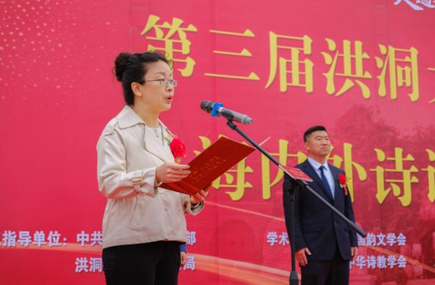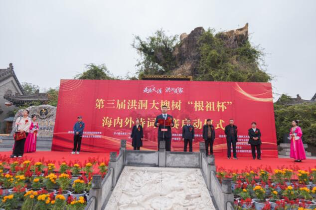 上午9時整,景區根雕大門外,“走遍天涯 洪洞是家 第三屆洪洞大槐樹根祖杯海內外詩詞大賽”啟動儀式準時開始。儀式上,洪洞縣委常委、政府黨組成員、宣傳部部長郭會軍宣布詩詞大賽啟動,洪洞縣文化和旅游局局長柳麗娟主持儀式,洪洞大槐樹尋根祭祖園有限公司總經理王宏健致歡迎詞,中鎮詩社社長景北記致辭并對賽事征稿事宜進行介紹。洪洞大槐樹尋根祭祖園有限公司董事長范忠義,洪洞縣文聯主席張紅紅,太原詩詞學會副會長、詩詞大賽評委代表張春義,晉社副社長、詩詞大賽評委代表高海生,大槐樹遷民遺址服務中心主任荊小英出席儀式。