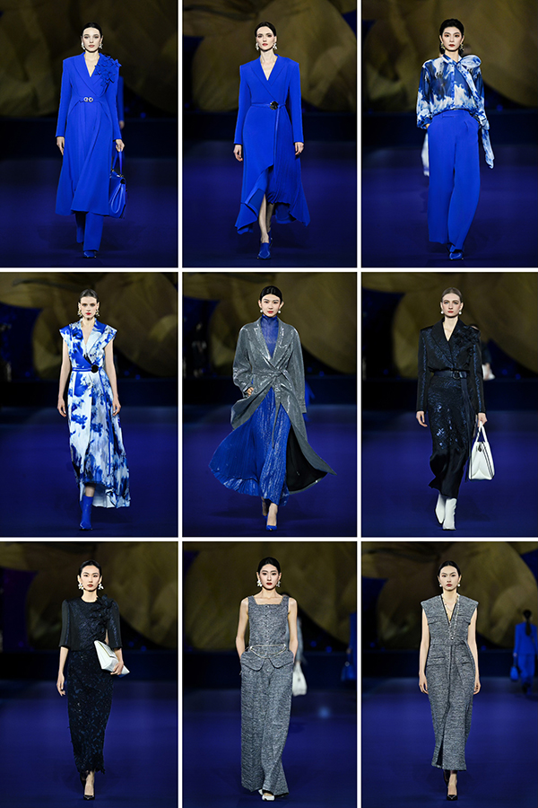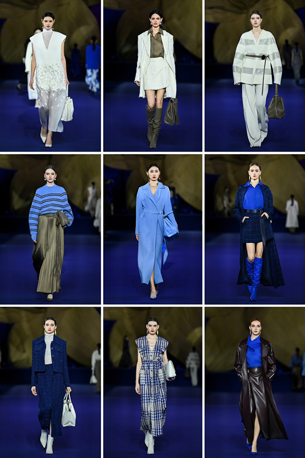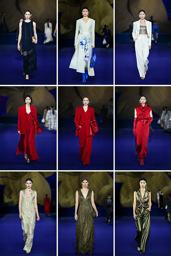 【時(shí)間的花】——圣星百合禮贊,致敬經(jīng)典優(yōu)雅,祈愿女性永葆本心,自在盛放。25度藍(lán)著染圣星百合,再現(xiàn)品牌經(jīng)典款、標(biāo)志性工藝——NAERSI經(jīng)典款真我套裝、花瓣大衣以先鋒設(shè)計(jì)回歸、以經(jīng)典致敬三十載優(yōu)雅歷程;【匠心盛開(kāi)】——重瓣百合盛開(kāi),閑雅新生:以自信之姿,迎接每一次綻放。品牌經(jīng)典花瓣領(lǐng)、經(jīng)緯格紋,結(jié)合流行元素?zé)ㄐ卵堇[,線跡描摹女性柔韌并濟(jì)的自信輪廓,賦予日常雅致逸趣;【贊許花冠】——鎏金百合加冕,華麗優(yōu)雅:時(shí)光鎏金,榮耀嘉獎(jiǎng)女性。栩栩如生的定位百合花、手工立體花,綻放于翩雅盛裝,復(fù)現(xiàn)貴族優(yōu)雅氣質(zhì),映升高級(jí)時(shí)裝的奢雅華光;【星耀前路】——宮燈百合熠耀,優(yōu)雅高定:綻釋女性永遠(yuǎn)向光生長(zhǎng),無(wú)齡感的態(tài)度,輝映當(dāng)代女性自主璀璨的人生。高定禮服融蘊(yùn)優(yōu)雅工坊標(biāo)志性柔光裝飾,以精致珠鉆、星光面料、立體裝飾等細(xì)致匠藝——凝聚的大美鎏光,輝映女性雋美閃耀“從容、自在”的優(yōu)雅精神。聚光燈下,質(zhì)感細(xì)節(jié)傳遞臻裝背后精準(zhǔn)繁復(fù)的工藝表達(dá)與美學(xué)堅(jiān)持。NAERSI在對(duì)過(guò)往的不斷超越中,邁向充滿多元構(gòu)想的未來(lái)。
