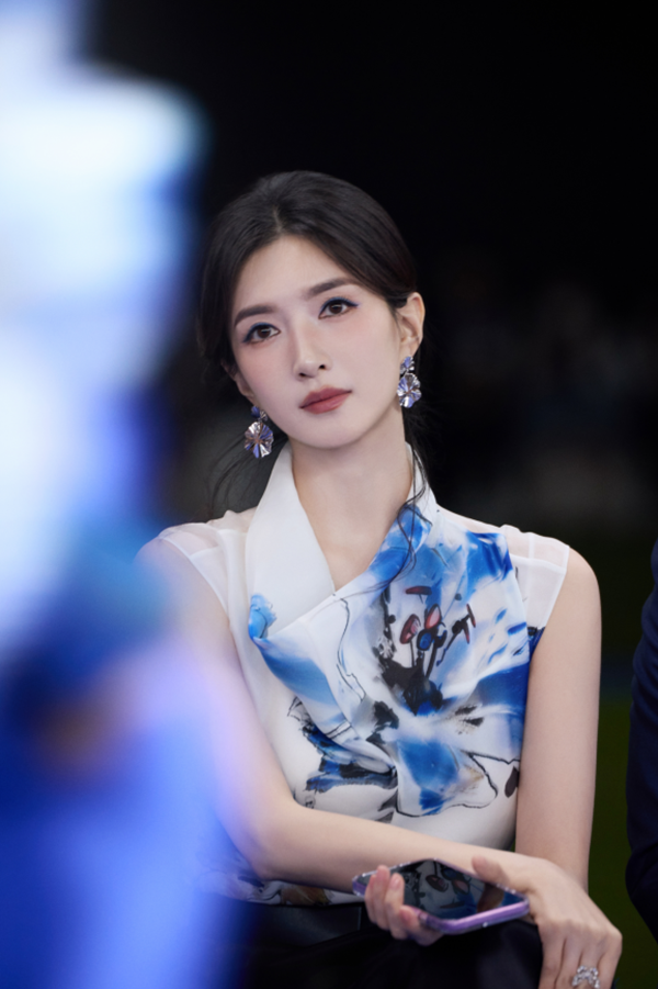 演員、模特、歌手瞿穎前排觀秀,身著NAERSI 25°藍(lán)套裝完美詮釋都市優(yōu)雅魅力。