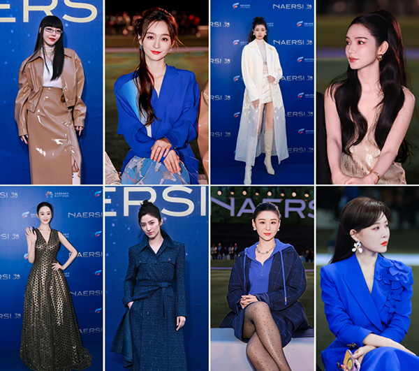 演員、歌手吳莫愁,演員何泓姍,演員、主持人李斯羽,演員代斯,演員海陸,歌手潘辰,演員李小萌,電影頻道主持人郭瑋身著NAERSI大秀系列亮相秀場(chǎng)