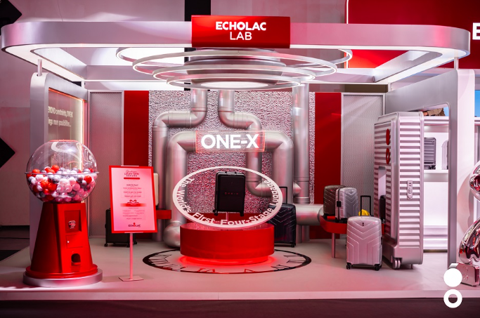 互動體驗中心以三重空間詮釋品牌的「超越」實力:ECHOLAC STUDIO融合東方精工與當代舒適美學,提供定制出行風尚及現場來賓的出行專屬印記;ECHOLAC HOME以旅行“家”為創意原點,在品牌IP“MINIKONG”的引領下,用超現實主義手法重構生活想象——王朝系列旅行箱裂變為沙發、電視等家居裝置,以箱體解構藝術語言,詮釋“超越想象”的品牌精神; ECHOLAC LAB將工程與藝術相融合,品牌領先行業的創新產品以直觀、前沿的互動方式呈現,充滿未來感造型的扭蛋機解鎖幸運之球,感受科技與想象力的極致融合。從歷史典藏到未來實驗室,將60年傳承的精工技藝與未來出行方式相融合, 完美詮釋愛可樂「FOR BEYOND只為超越」的品牌精神。