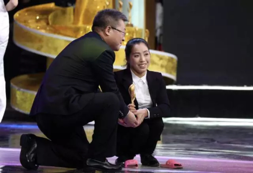 當(dāng)蘇寧云商副董事長(zhǎng)孫為民單膝下跪?yàn)樗C發(fā)“執(zhí)著精神”獎(jiǎng),她的故事,感動(dòng)了在場(chǎng)的所有人。