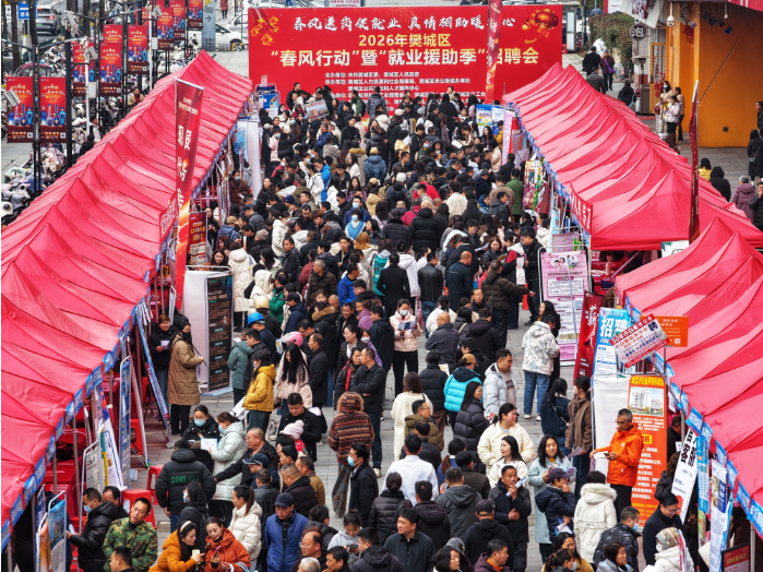 2026年2月26日,求職者在湖北襄陽市樊城區“春風行動”暨“就業援助季”招聘會現場咨詢崗位信息。新華社發(謝勇攝)