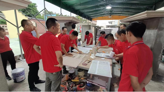 在培訓(xùn)會(huì)上,林德漆的技術(shù)專家們?yōu)閰?huì)者詳細(xì)介紹了仿石漆的種類、特性、施工流程以及注意事項(xiàng)等方面。通過理論講解、案例分析、實(shí)際操作等多種方式,參會(huì)者們深入了解了仿石漆的特點(diǎn)和應(yīng)用,并進(jìn)行了實(shí)際操作訓(xùn)練。