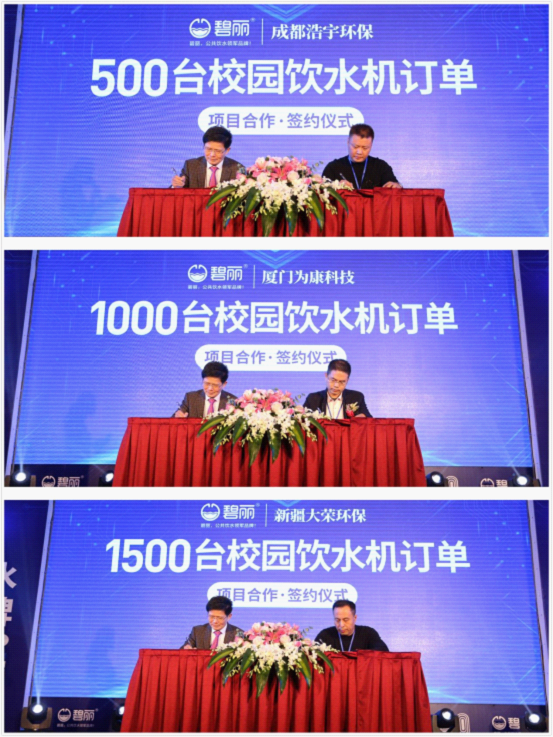 會上碧麗總裁巫總便與北京盛世經典營銷策劃有限公司張總進行合作簽約儀式。兩人雙手捧著的合約本,象征著碧麗從此開啟品牌升級大計!未來“碧麗”公共飲水品牌將會被更多國人所知曉!