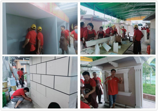 在培訓實操環節,剛剛接受了理論培訓的學員們面對新產品、新工藝躍躍欲試,學員分小組,在老師的指導下,進行大面積上墻施工。