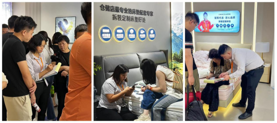 作為倉儲店最專業的床墊配套專家,席夢雅在此介紹了“588”的含義,“5”指5種人體的不同睡感,“8”是8個身體部位自然睡姿維度,“8”是席夢雅睡眠感程度。席夢雅在展會上展示了全拆裝床墊的系列新品,精選全球資源,打造健康睡眠,提供多種睡感、多種定位、多種組合、多種規格、多種材料任意定制服務。