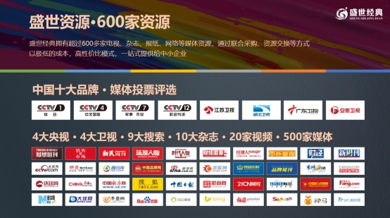 盛世經典擁有600余家媒體資源,涵蓋央視、衛視、主流雜志、視頻平臺、搜索引擎等,能通過聚合采購與資源互換,以高性價比模式助力企業登上權威媒體舞臺,快速樹立“中國十大品牌”“行業標桿”等高端形象。