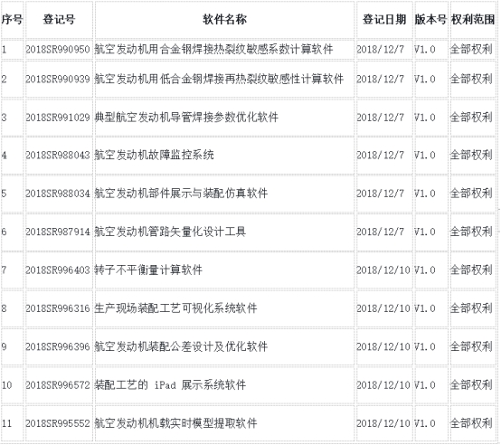 從官方渠道獲悉,航天智造(廈門)科技研究院已經獲得的如下17項目航空軟件系統完整的知識產權授權(航天智造相關軟件登記信息)