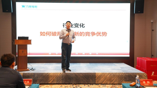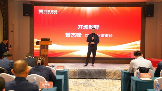 會議伊始,懷化/吉首萬象板材總代理、杰鋒建材董事長曾杰鋒作開場致辭,高度肯定各位二級加盟商長期以來的卓越貢獻與鼎力支持。立足新起點,堅信雙方將持續凝心聚力、優勢互補,共贏長效增長新輝煌。