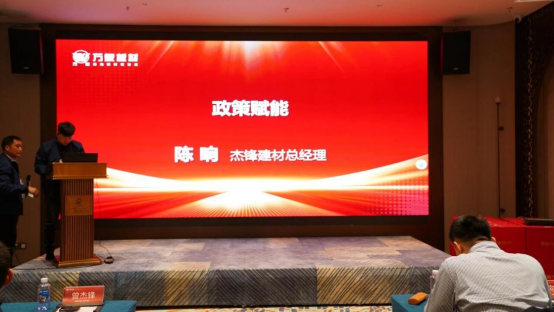 杰鋒建材總經理陳響發布本次活動專屬利好政策,以極具誠意的扶持力度直擊渠道需求,為加盟商賦能護航、提振信心。