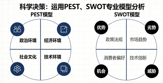 ·科學(xué)決策:運(yùn)用PEST、SWOT等專業(yè)模型,精準(zhǔn)定位目標(biāo)市場、產(chǎn)品、定價(jià)、渠道與推廣策略,避免盲目發(fā)力。