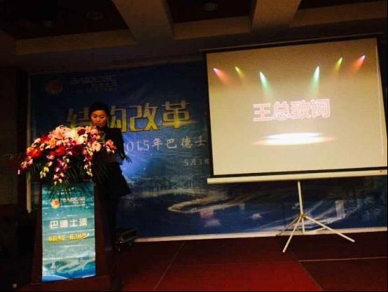會上,首先由揚州巴德士漆總經理王雪婷作會議致辭,她表示:揚州市場所取得的成就,是巴德士集團公司的正確導向和在座的經銷商共同努力所產生的結果,在市場日益嚴峻的情況下,只有廠商通力合作,才能更好的把握市場開拓市場,實現共贏。
