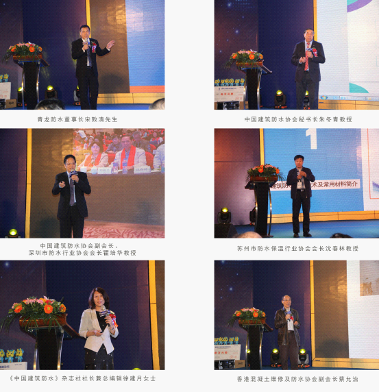 中國建筑防水協會秘書長朱冬青教授,中國建筑防水協會副會長、深圳市防水行業協會會長瞿培華教授,中國硅酸鹽學會房建材分會防水保溫專業委員會主任、蘇州市防水保溫行業協會會長沈春林教授,《中國建筑防水》雜志社社長兼總編輯徐建月編審,香港混凝土維修及防水協會會長陳寶超、副會長蔡允治,澳門混凝土檢測維修及防水工程協會會長王宗勝等領導、嘉賓,青龍防水代理商、經銷商等合作伙伴,媒體代表以及青龍防水董事長宋敦清、營銷總監賀金龍、生產研發總監張科等高管共500多人出席活動。