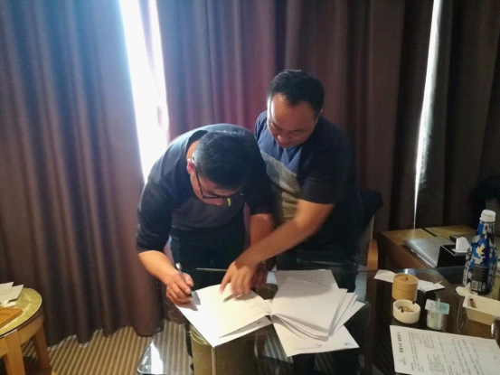 招商部部長李浩偉與溧陽超人葛明俊簽署代理合同