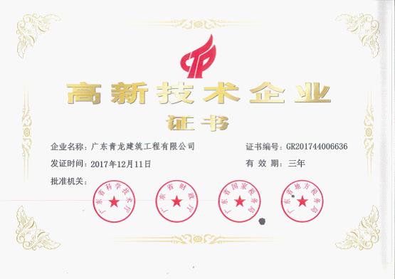 近日,經(jīng)過廣東省科學技術廳、廣東省財政廳、廣東省國家稅務局和廣東省地方稅務局四方的嚴格審核,廣東青龍建筑工程有限公司成功通過審核,榮獲國家“高新技術企業(yè)”證書,標志著青龍公司步入全新的科技研發(fā)和科技成果轉化的良性循環(huán),科技元素成為企業(yè)發(fā)展新的驅動力。